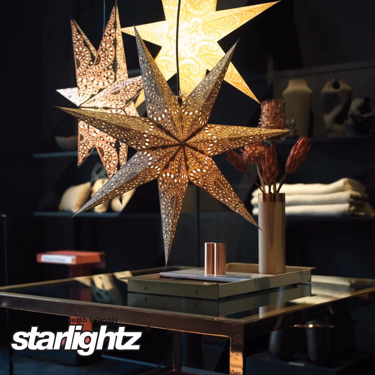 Dessa dekorativa stjärnorna är handgjorda av olika högkvalitativa papper. De är lämpliga som fönsterdekoration och för mysig belysning av varje rum. Varje stjärna levereras i ett fällbart fodral med tryckta monteringsanvisningar och kan monteras i några enkla steg.